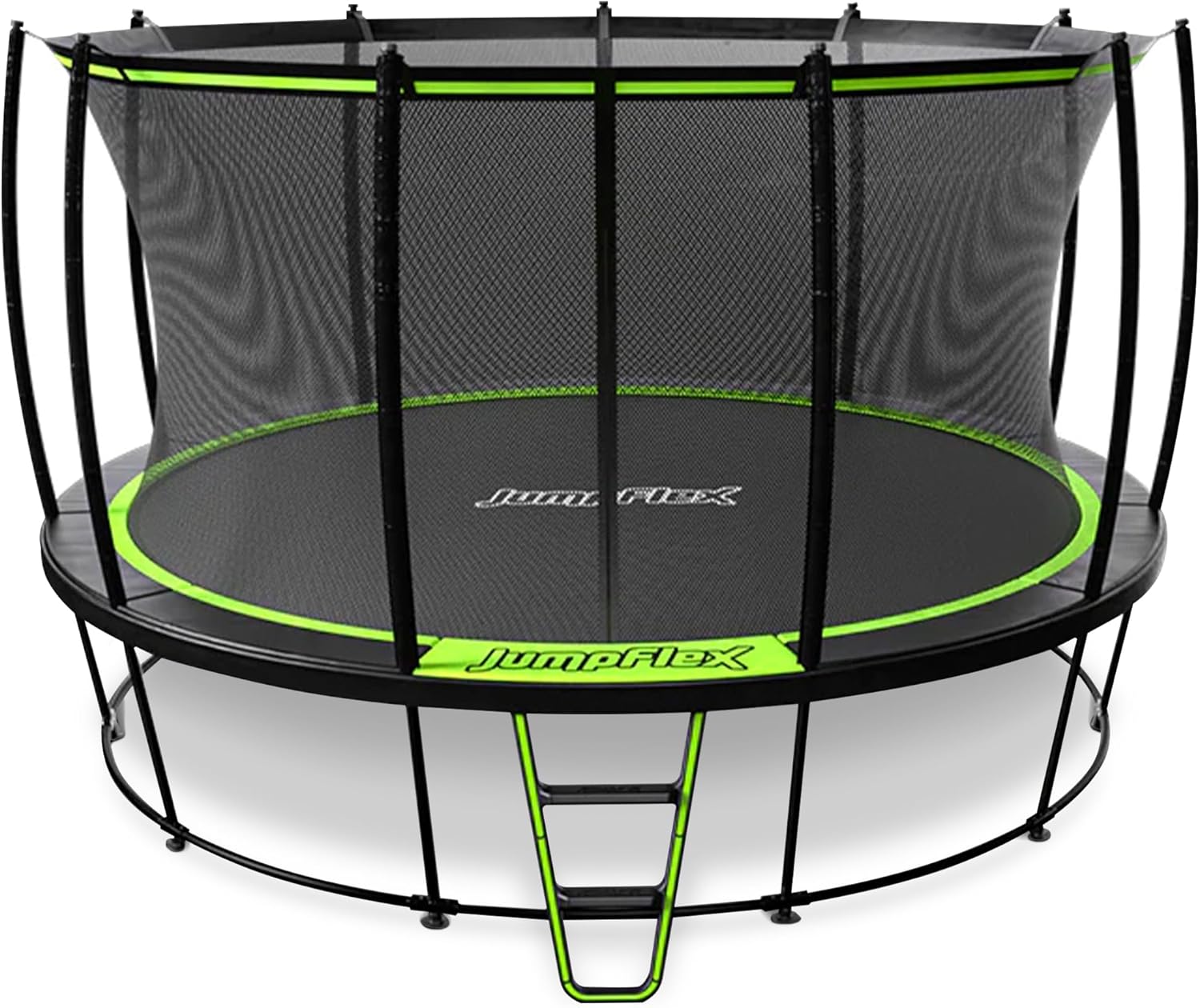 | Jumpflex HERO 14ft | 14 ft (round) | 350 lbs (individual) | 550 lbs (total) | High-tensile extension springs | 10 years | Larger adults, families, value pick |